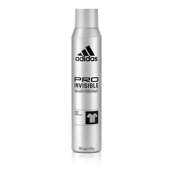 Adidas Pro Invisible 48H Antitranspirant 200 ml M ist ein wirksames Antitranspirant-Deodorant für Männer, das bis zu 48 Stunden lang vor Schweiß und Geruch schützt, ohne weiße Flecken auf dunkler Kleidung oder gelbe Flecken auf hellen Stoffen zu hinterlassen. Es wurde für aktive Männer entwickelt, die einen zuverlässigen Schutz und lang anhaltende Frische den ganzen Tag über wünschen.