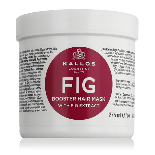 Kallos Cosmetics Fig Kallos Hair Mask 275 ml ist eine nährende Haarmaske mit Feigenextrakt, die trockenem und normalem Haar intensive Feuchtigkeit, Geschmeidigkeit und Glanz verleiht. Dank ihres reichhaltigen Gehalts an Vitaminen, Antioxidantien und Fruchtextrakten hilft sie, die Haarfaser zu regenerieren, ohne sie zu beschweren, und hinterlässt das Haar erfrischt und leicht kämmbar.