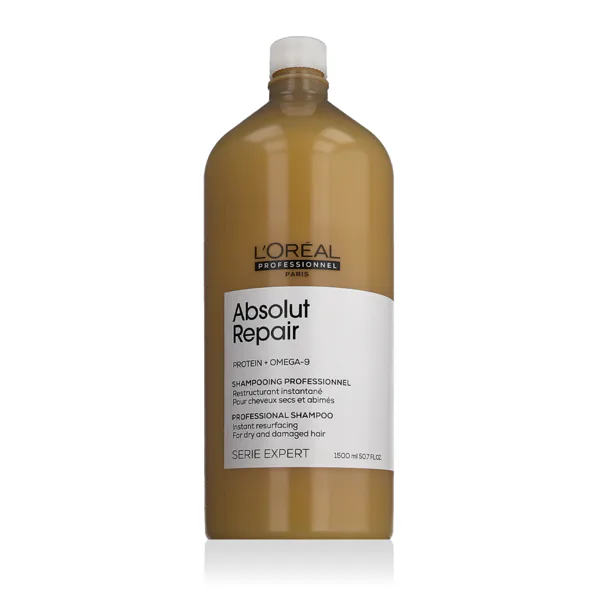Das L'Oréal Professionnel Serie Expert Absolut Repair Protein + Omega 9 Shampoo 1500 ml ist ein aufbauendes Shampoo für stark geschädigtes Haar, das sanft reinigt und gleichzeitig die Haarfaser tiefenwirksam nährt und stärkt. Dank seines Gehalts an Proteinen und Omega-9-Fettsäuren verleiht es dem Haar Elastizität, Glanz und Widerstandsfähigkeit, ohne es zu beschweren.